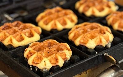 本場ドイツから取り寄せたワッフルメーカーで焼き上げたリエージュワッフル