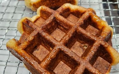モチモチ生地にシャリっとしたワッフルシュガーの食感がアクセント
