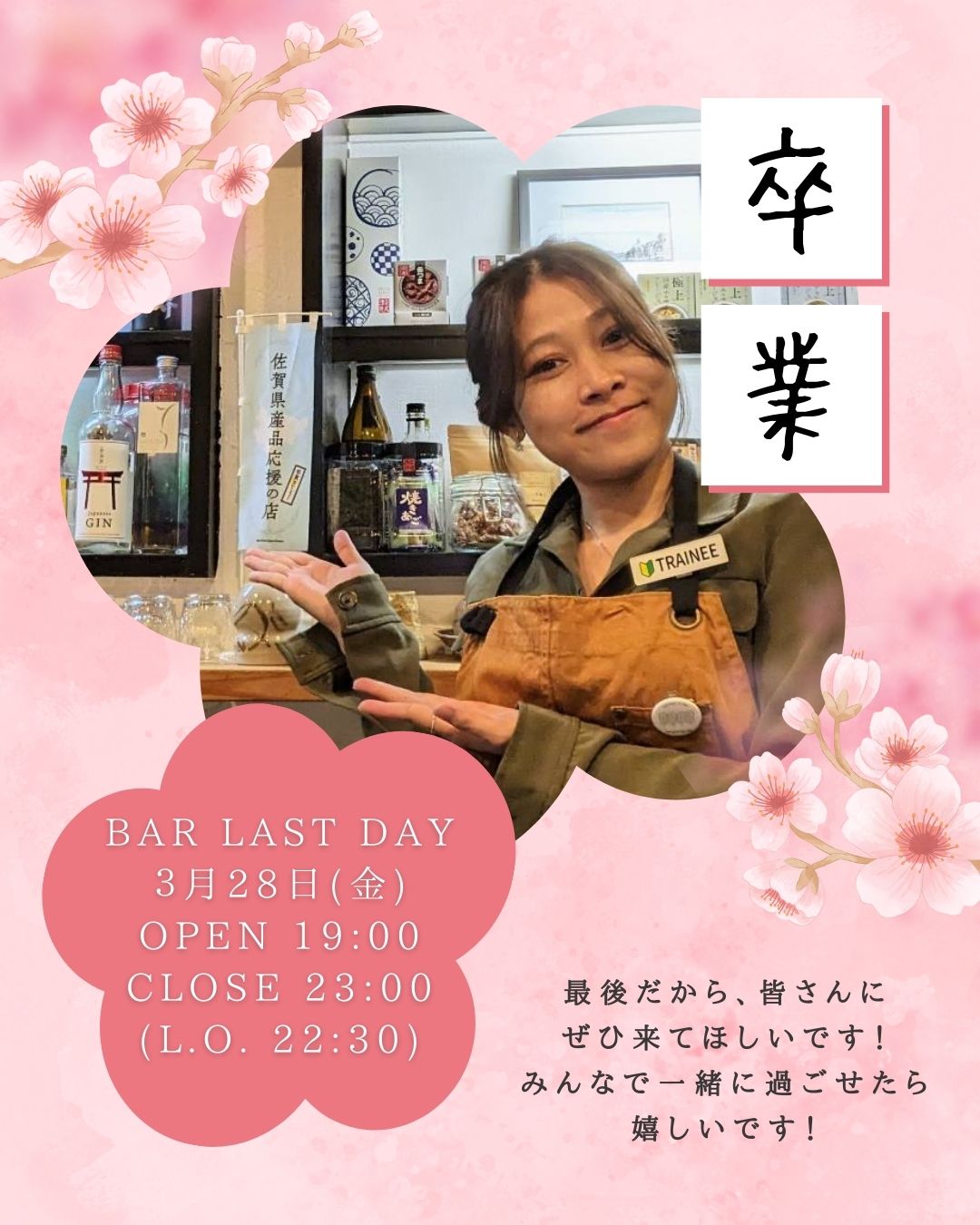 今月で卒業するスタッフの最後のBARの日です!