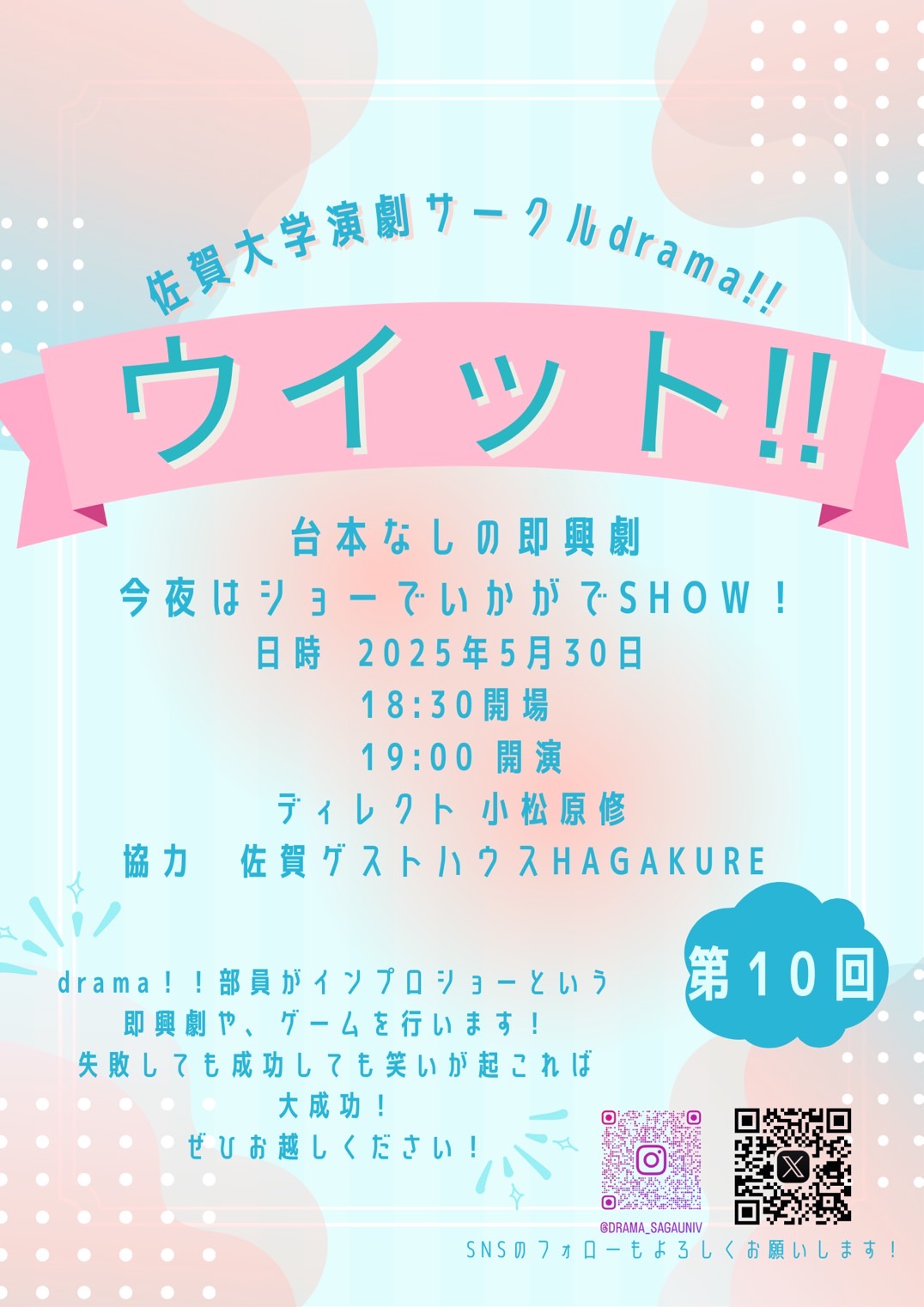 <イベントのお知らせ>第10回即興演劇ショー『ウイット!!』【主催佐賀大学演劇サークルdrama!!】