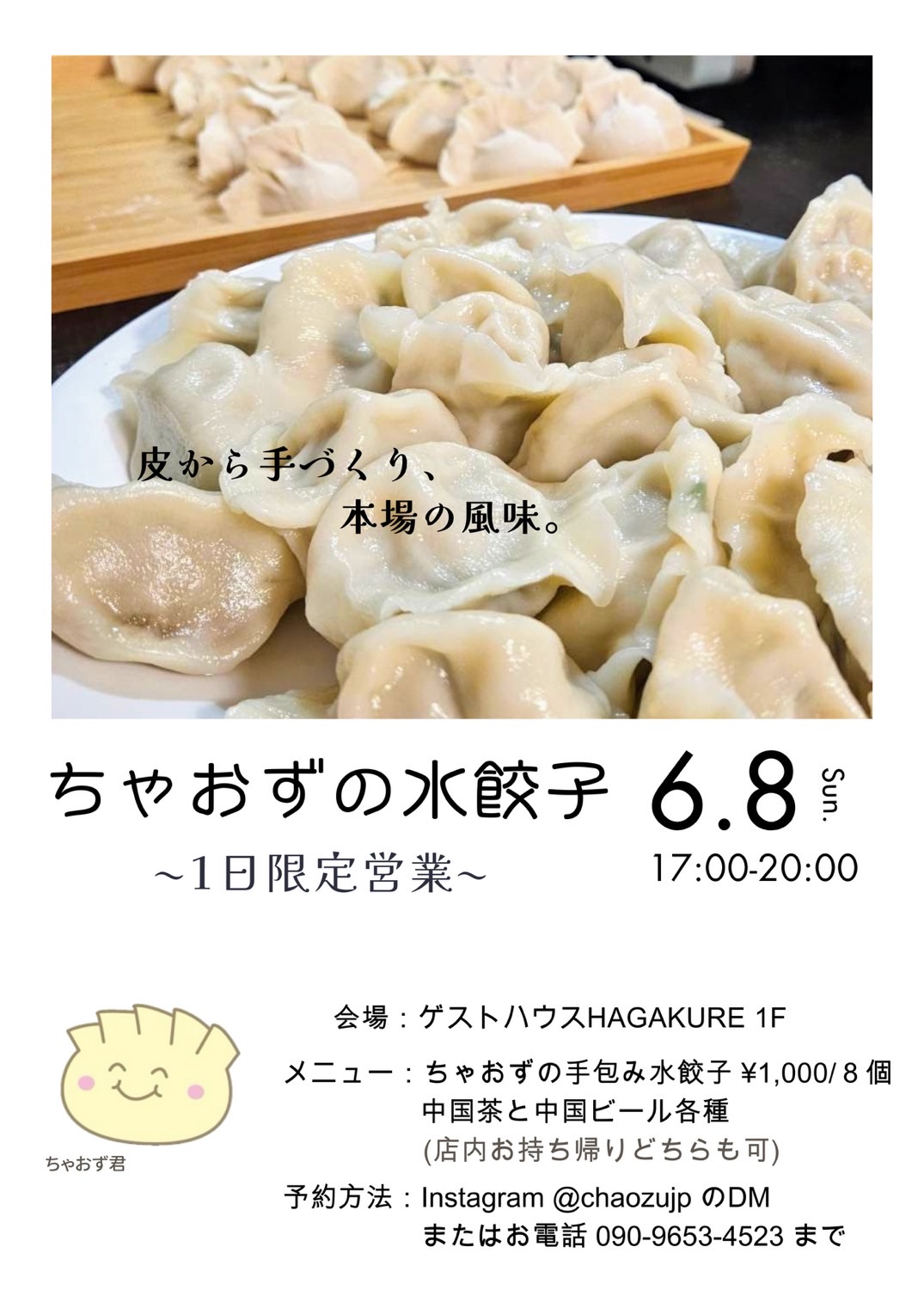 <イベントのお知らせ>ちゃおずの水餃子~1日限定営業~【主催:ちゃおず】
