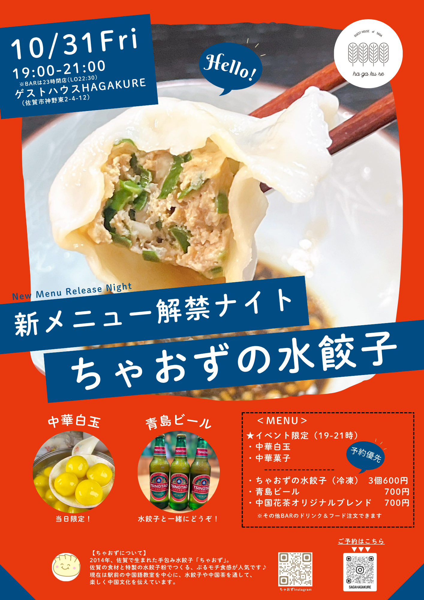 #新メニュー解禁ナイト #ちゃおずの水餃子 #水餃子 #手包み水餃子 #佐賀イベント #中国文化 #国際交流 #ゲストハウスHAGAKURE #佐賀ゲストハウス #SAKEbar #sagahagakure